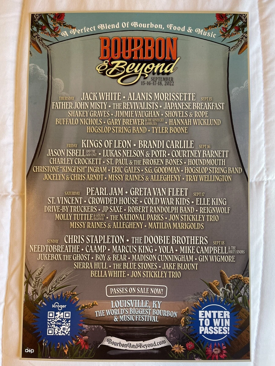 2022 Bourbon & Beyond Festival Poster Louisville, KY Pearl Jam